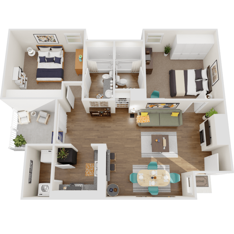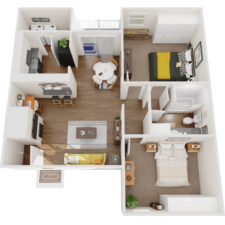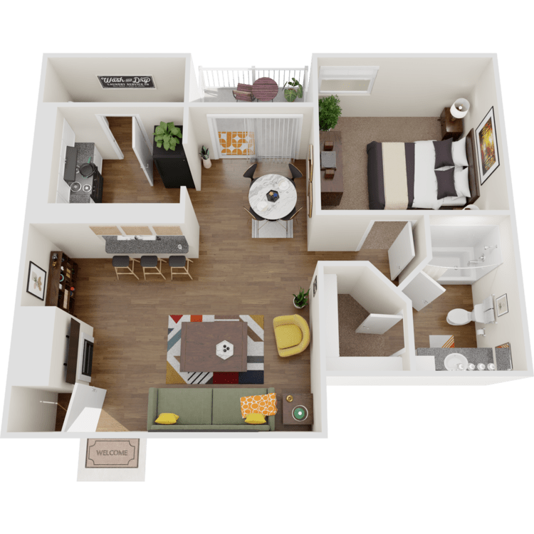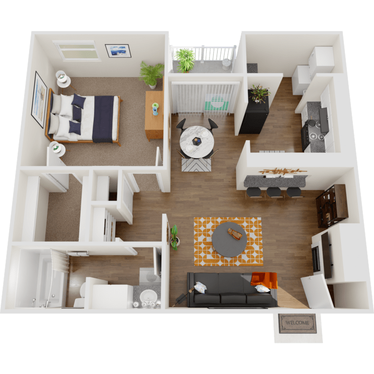 Discover inspired living at Jamesbridge Apartments with four versatile floor plans showcasing spacious one and two-bedroom apartments for rent. Cozy up beside the fireplace or take in serene lake views from select residences. Balconies or patios add an open-air touch, while washer and dryer connections and ample storage bring added convenience.